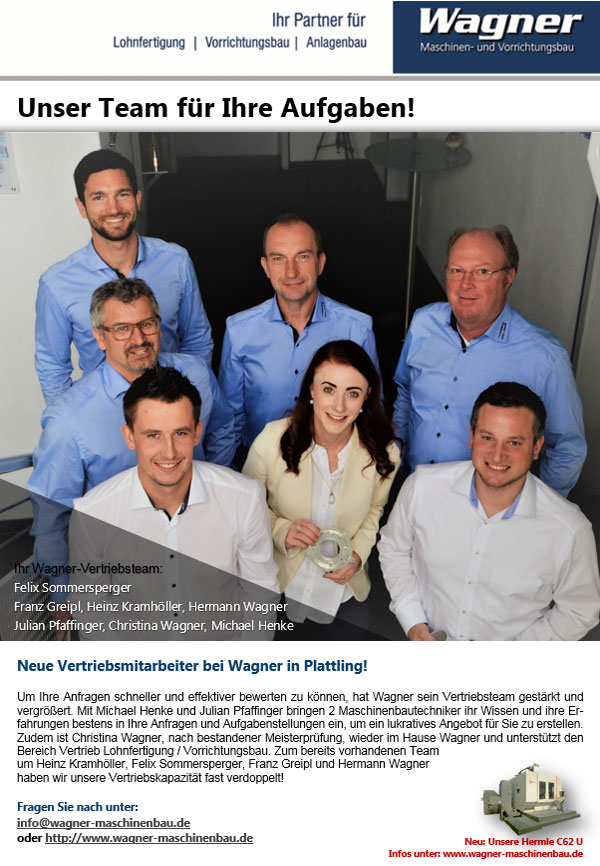 Plattling. Hocherfreut begrüßte die Geschäfts- und Ausbildungsleitung von Wagner Maschinenbau am 2. September vier neue Auszubildende.