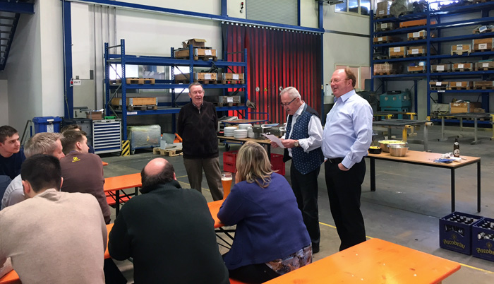 Plattling. Am 20.02.2017 feierte Seniorchef Hermann Wagner seinen 80. Geburtstag! Und natürlich musste das gebührend gefeiert werden. Deshalb lud er die gesamte Belegschaft der Firma Wagner zu einem Geburtstagsessen in der Montagehalle ein.