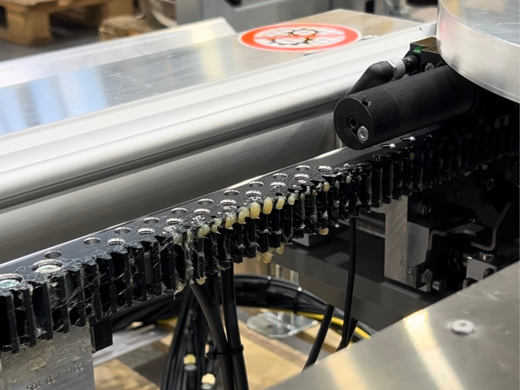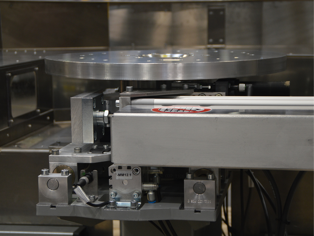Des Weiteren ist alles bis zur Ventilinsel komplett verschlaucht und verkabelt. Der Start-Taster und auch der Not-Halt lassen den Drehspeicher schnell ein- bzw. ausschalten. Dabei können die Betätigungstaster wahlweise rechts oder links angebracht werden. Die Massenträgheitsmomente der Drehspeicher können bis zu 400 kgm² betragen.
