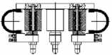 Nach dem Schweißen fährt der Druckübersetzer zurück. Das 5/2-Wegeventil öffnet wieder den Kühlwasserkreislauf und die Schweißzylinder fahren durch Federkraft und Wasserdruck in die Ausgangsstellung zurück. Jetzt kann der nächste Schweißzylinder oder die nächste Schweißzylindergruppe zugeschaltet werden und der ganze Zyklus wird wiederholt. Das folgende Bild zeigt den Wasserhydraulik-Aktivschweißzylinder: